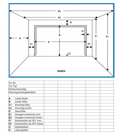 Wenn erwünscht, können Sie bereits Ihre Maße in dieses Aufmaßblatt eintragen und erleichtern uns die Arbeit bei der Erstellung eines Angebots.